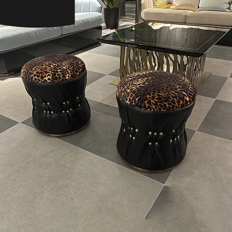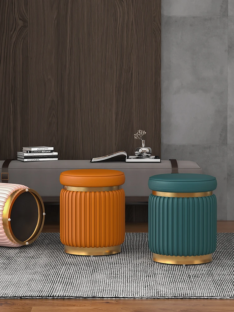 ヴェイデン家具 イタリアンスタイルのラグジュアリーな化粧台スツール - レザーとファブリックのコンビネーションでシンプルなデザイン!靴を履き替えるのに最適なリビングルーム用リラックススツール。快適な座り心地で、あなたの空間を格上げ!