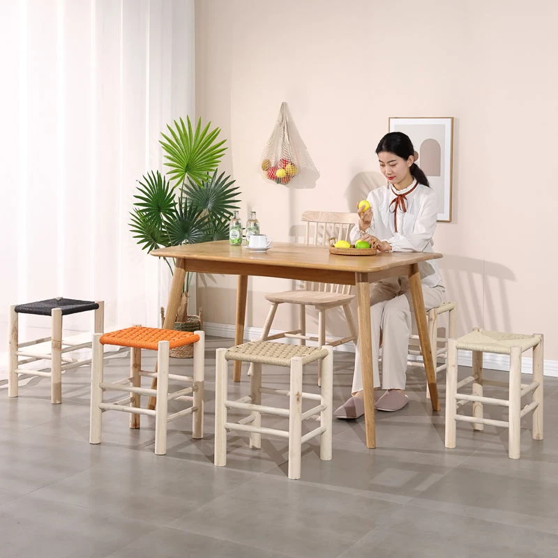 スタイリッシュな無垢材のメイクアップスツール、人気のインテリアにぴったり!手作りの編み込みが魅力的なこの小型スツールは、リビングやお部屋のアクセントに最適です。大人も使える快適な座り心地をお楽しみください。