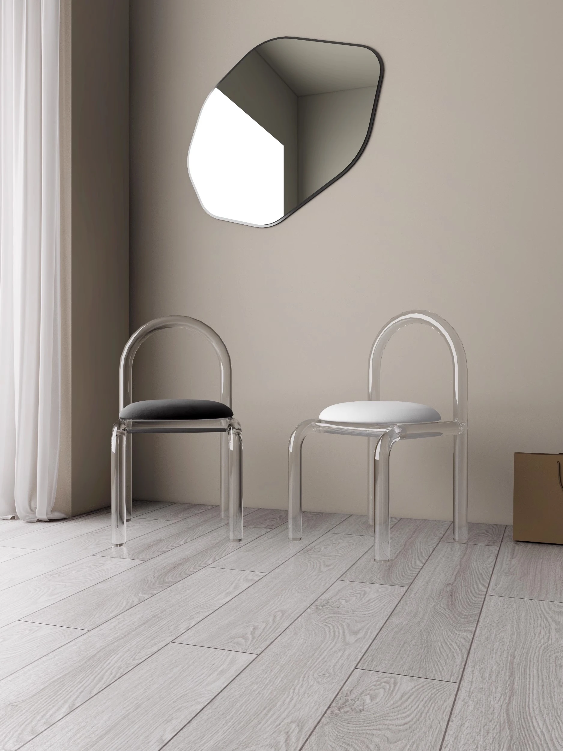 現代的軽奢インスタ映えメイクアップチェア、アクリル透明椅子!北欧ミニマリストデザインのダイニングチェアとしても最適。美しいメイクスペースを演出する、スタイリッシュなドレッシングテーブル用スツール!