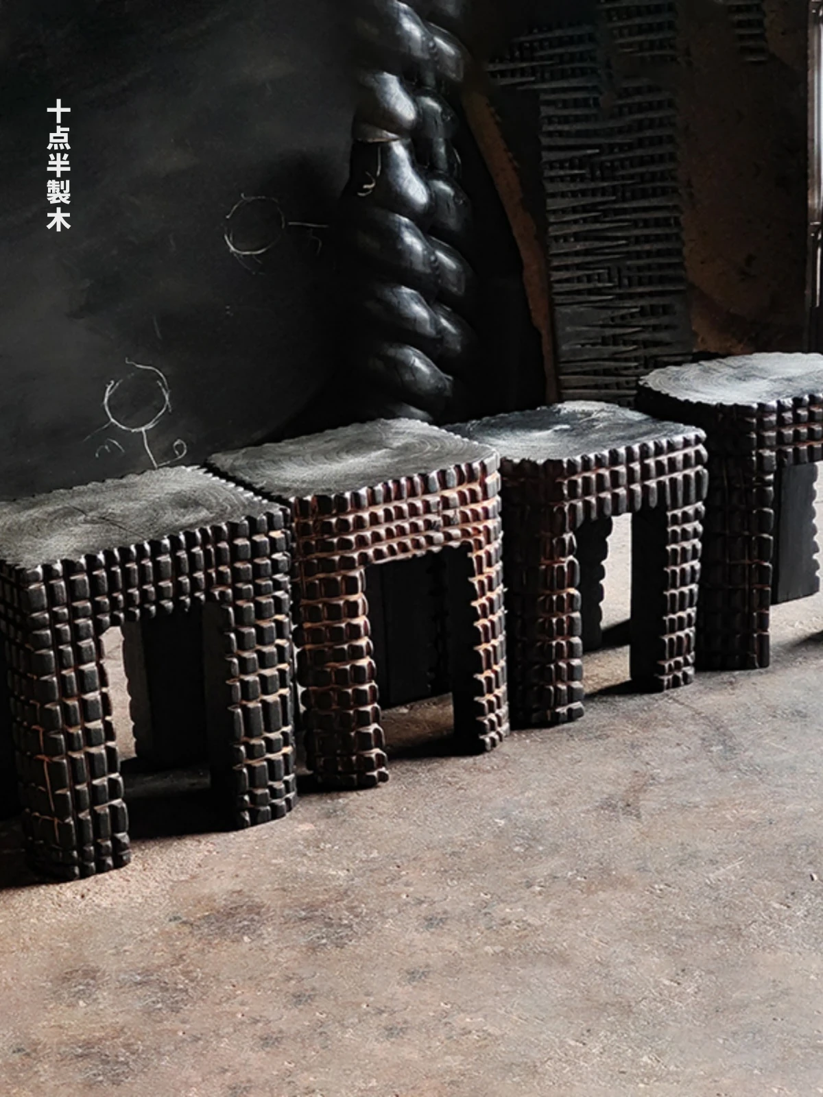 十点半制木 鳄魚デザインの無垢材化粧台椅子 - 侘寂風のシューズベンチ、オリジナル彫刻仕上げ、家庭用に最適なスタイリッシュなロースツール!