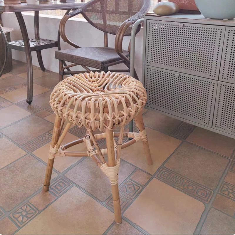 天然インドネシア製の手作りラタン円形スツール - 家庭用シューズチェンジスツール、民宿やリラックス用、化粧用、北欧スタイルのラタンスツール。おしゃれで機能的なインテリアアイテム!