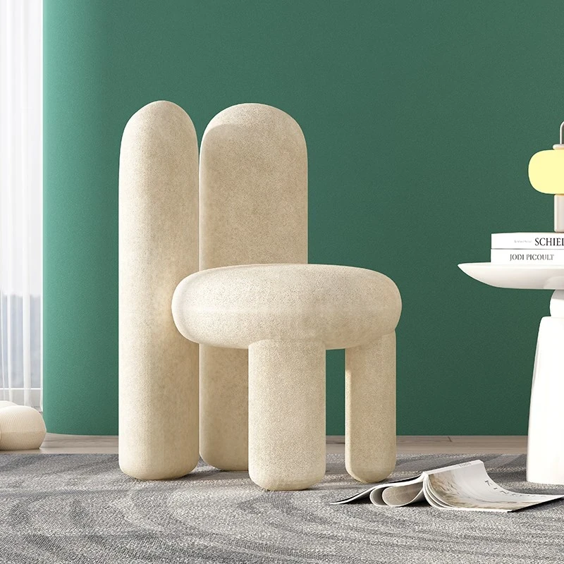 クリーム色の化粧台用小椅子、寝室にぴったりのモダン&シンプルデザイン。個性的な異形で、人気のインフルエンサーにも愛されるスタイル!あなたのビューティータイムを特別に演出します。