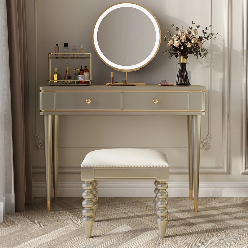 北欧風デザインの小型化粧台椅子|現代的な女子向けの軽奢華スタイル|シンプルな美甲用にも最適なスタイリッシュなバニティチェア