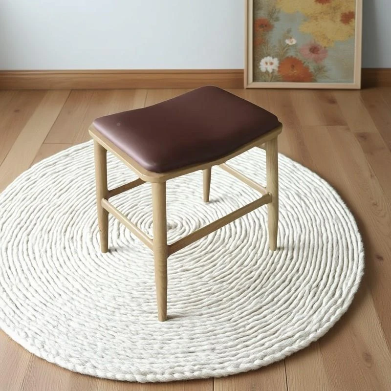 シンプルでスタイリッシュな簡菲娜の無垢材化粧台椅子2025年新作!省スペース設計で、真皮の座面が贅沢な使い心地。おしゃれな寝室にぴったりの化粧凳です。