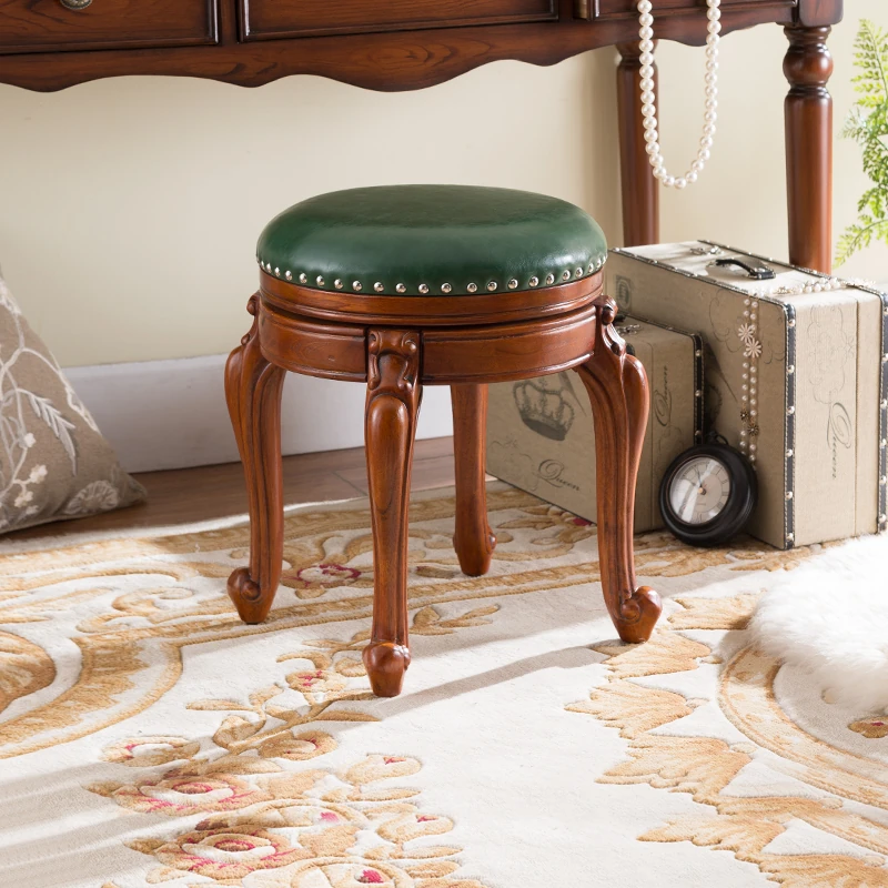 アメリカンスタイルの高品質木製メイクスツール - 回転式ラウンドスツール、低いスツール、ダイニングスツール、シューズチェンジ用スツール、リアルレザー使用のメイク台スツール、ティーテーブル用スツール。あなたのインテリアにぴったりの一品!