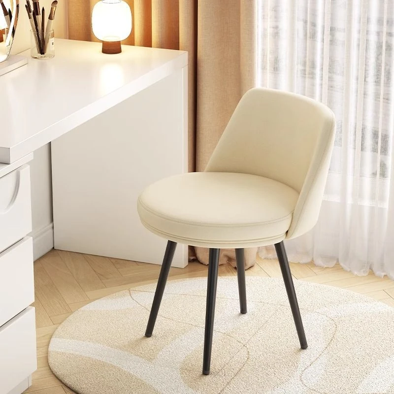 クリーミーな風合いのメイクアップチェア 家庭用 女の子の寝室に最適 回転式 背もたれ付き 高級感あふれるネイルチェア ドレッサースツール