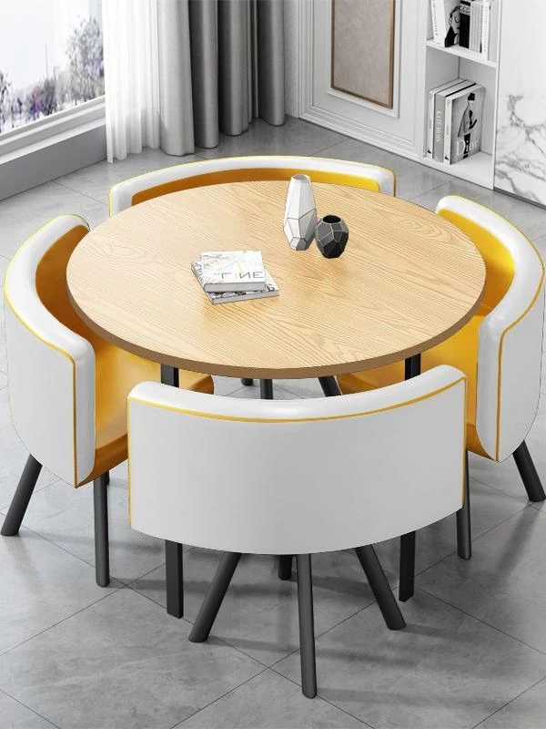 リラックスエリアの営業所用会議テーブルセット - シンプルでスタイリッシュな小型テーブルと椅子の組み合わせ、快適な接客と商談を実現!