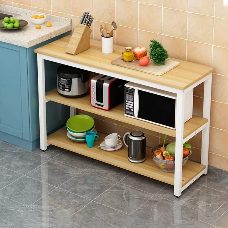 キッチン用マルチ機能移動式テーブル - 家庭向けの多層デザイン、切菜にも最適なシンプルでスタイリッシュな長方形ウッドテーブル!収納力抜群で、料理の効率をアップ!
