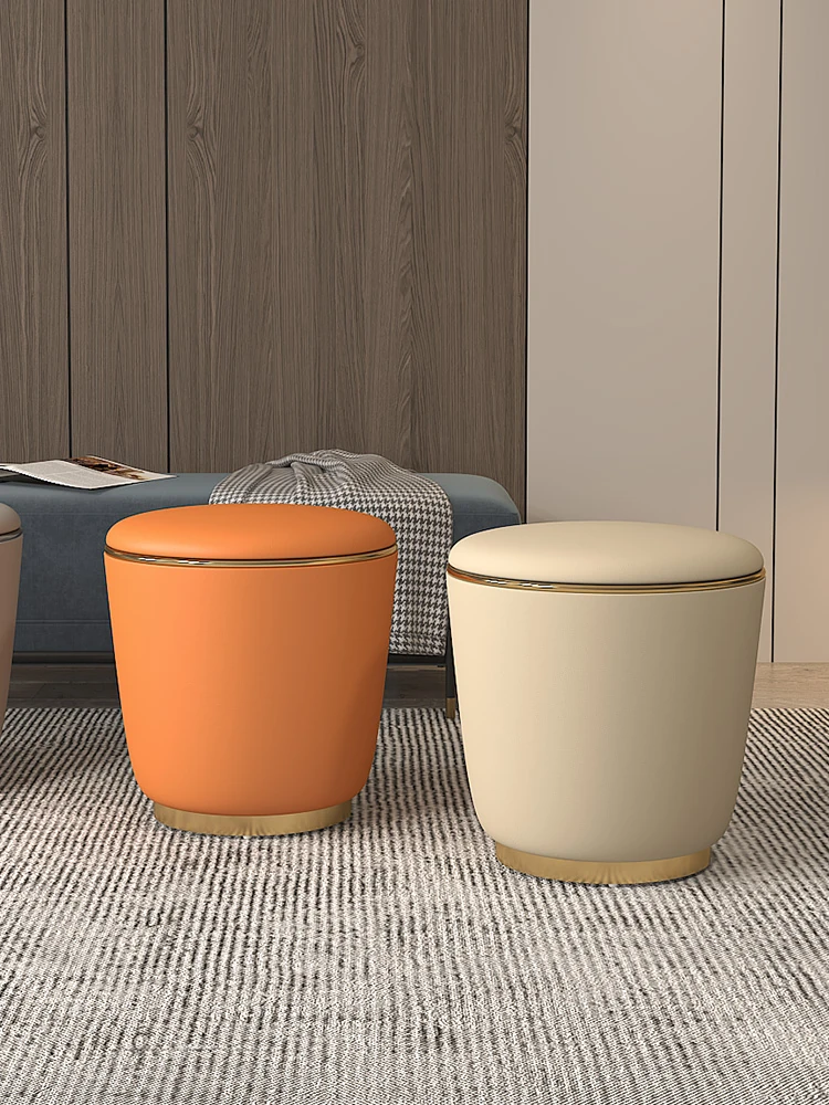 ラグジュアリーな茶卓とスツールセット - シンプルでスタイリッシュなデザイン、リビングルームや寝室にぴったりの丸型スツール。おしゃれな化粧台に最適なアイテムで、インテリアを一新!