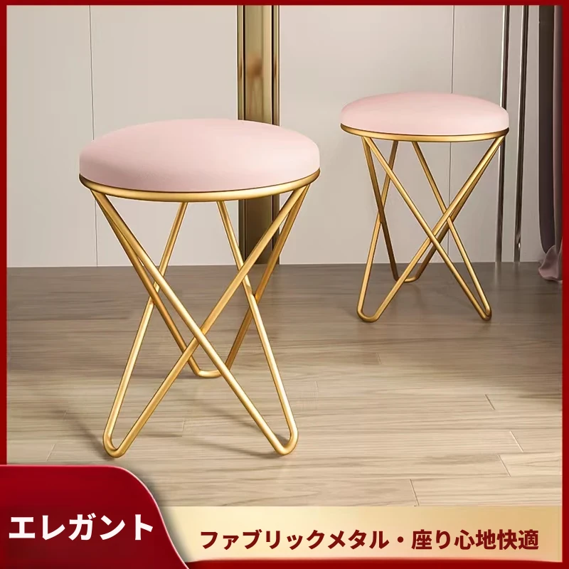 北欧スタイルのアイアン化粧台椅子 - おしゃれで高級感溢れるデザイン、女性の寝室やリビングにぴったり!快適な座り心地で、美容タイムをもっと特別に。