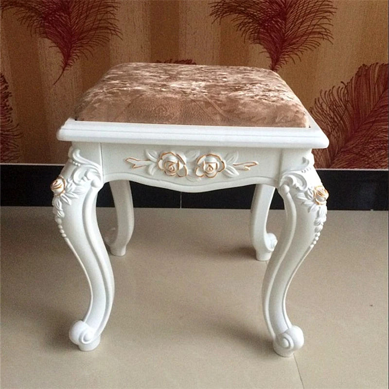 現代的シンプルなドレッシングスツール、欧風彫刻デザインの靴置きスツール。高品質な無垢材を使用したドレッシングテーブル用スツールで、メイクアップやダイニングシーンにもぴったり!おしゃれで機能的なアイテムです。