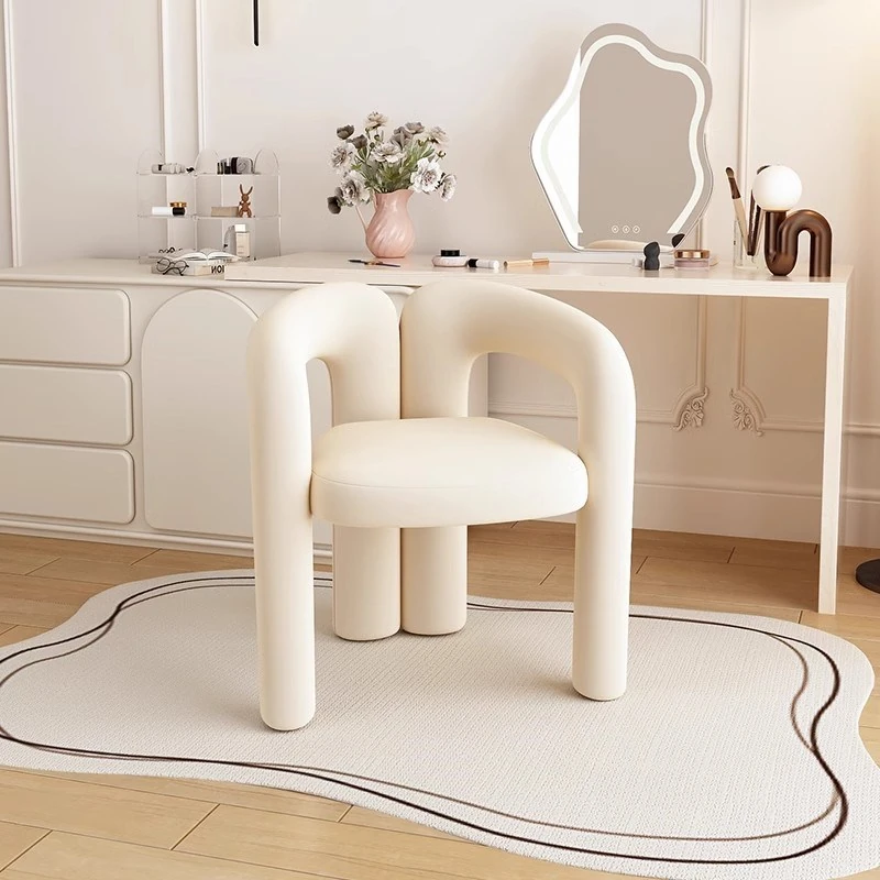 クリーム風化妆椅子 - シンプルで高級感あふれる、女の子のための寝室用ドレッサー椅子。雲のような柔らかさで、美容やネイルに最適!
