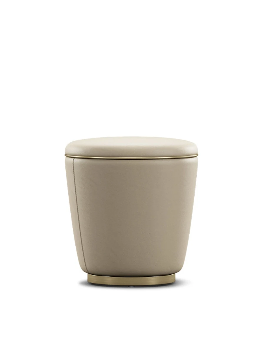 高級感あふれる化粧台用スツール - 本革仕上げのラウンドスツール、シンプルでモダンなデザイン、寝室やリビングに最適!ステンレス製の脚で耐久性抜群、優雅な空間を演出します。