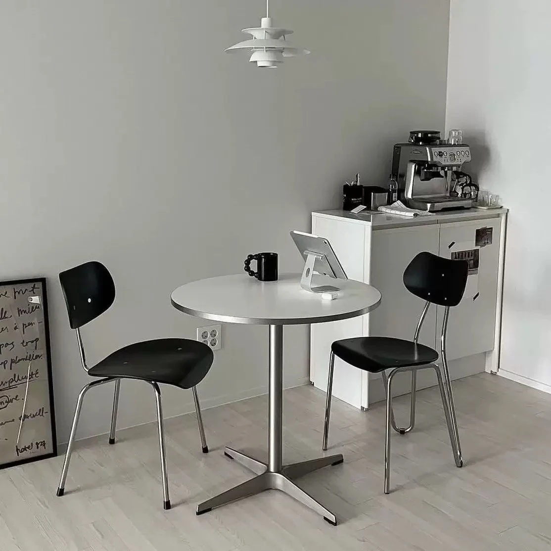 イームズシルバーバイザーのモダンミニマリスト円形テーブル - 韓国スタイルの小型カフェやレストラン、オフィスにも最適!シンプルで洗練されたデザインが空間を引き立てます。
