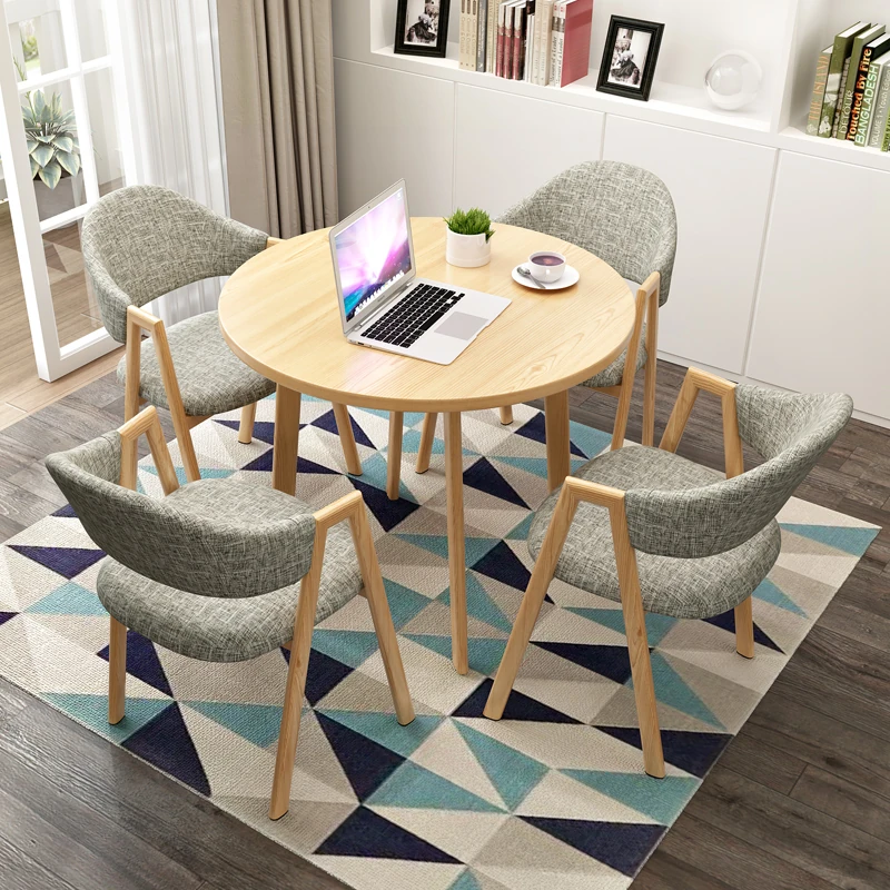 4Sショールーム休憩エリアに最適!シンプルでスタイリッシュなビジネスカジュアルなテーブルとチェアのセット、4人用の小さなラウンドテーブルで、リラックスした商談を楽しめます。