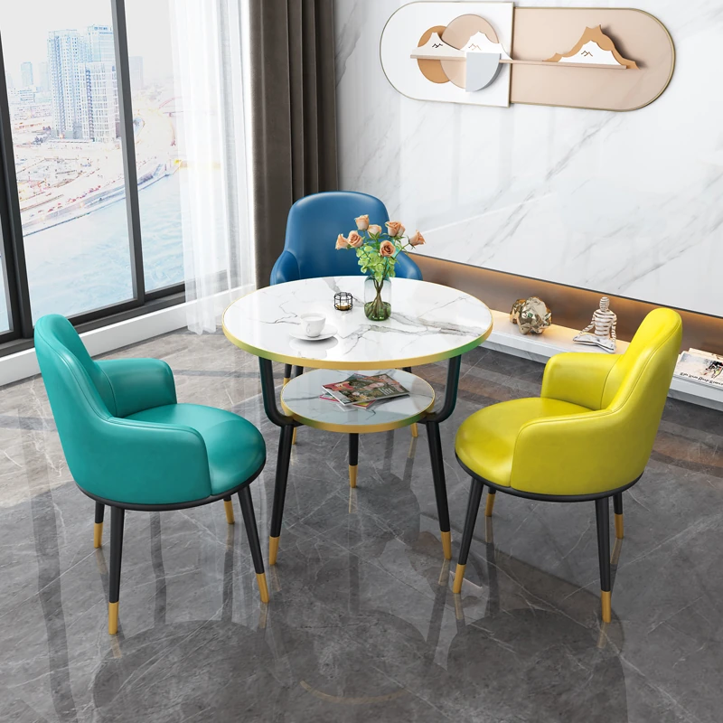 シンプルでスタイリッシュな談話テーブル&チェアセット!カフェやティー店に最適な小さな円形テーブル。北欧デザインで、リラックスした雰囲気を演出し、顧客との会話をより楽しくします。