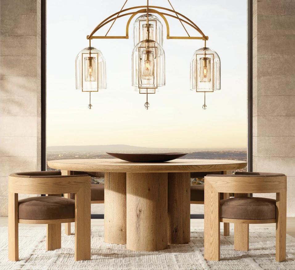 アメリカRH家具 フランス田舎風 ヴィンテージ 無垢材の侘び寂びスタイル モダンミニマリスト オーク製 丸型ダイニングテーブル 家庭用に最適!