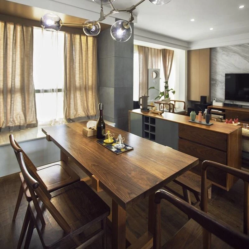黒胡桃の丸型ダイニングテーブル - スタイリッシュな一体型伸縮式、家庭用新中式茶卓。禅のエッセンスを取り入れた高品質な無垢材家具で、心地よい食卓を演出します。