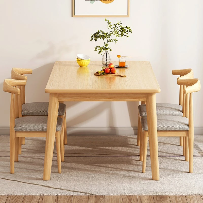 北欧風シンプルな実木脚ダイニングテーブルセット - 小さな空間に最適な長方形の食卓、スタイリッシュで機能的なデザインでおしゃれな食事を楽しもう!